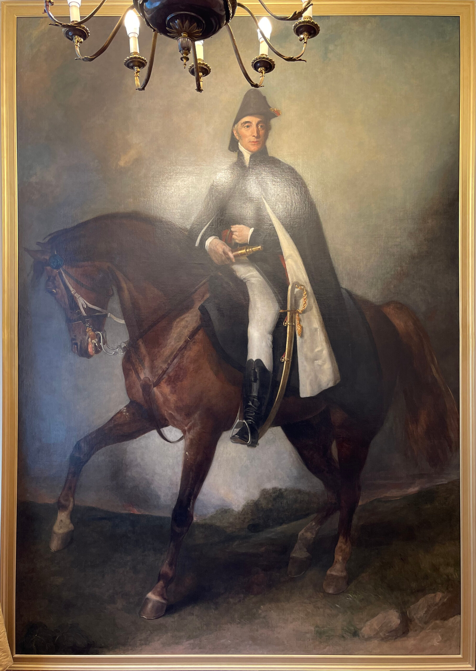 Duke of Wellington on Copenhagen, an imposing 19th-century oil on canvas attributed to Henry William Pickersgill (or his circle), captures the 1st Duke of Wellington mounted on his legendary warhorse, Copenhagen. Measuring over 3 meters in height, this romanticised yet stately equestrian portrait had suffered the wear of time, old restorations, and environmental exposure.